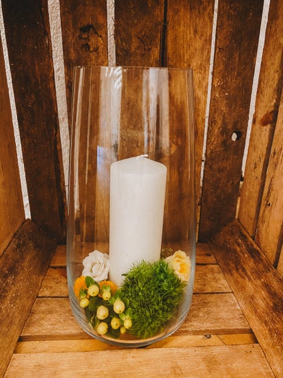 Zum anderen eignen sich unsere Vasen auch hervorragend als Windlichter. Stellt einfach eine Stumpenkerze hinein und platziert sie zum Beispiel auf unseren Vintage Holzkisten im Empfangsbereich, auf Eurem Geschenketisch, als Kirchendekoration oder bei einer Gartenhochzeit für tolle Aktzente am Abend.