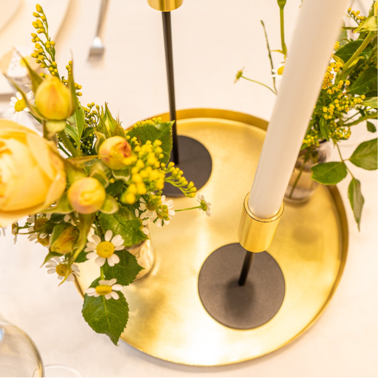 Unser goldenes Tablett lässt deinen Hochzeitstisch einfach edel aussehen. Stellt es mittig auf Eure Hochzeitstische und dekoriert sie mit Kerzenhaltern und Blumen. Eure Hochzeitsgäste werden aus dem Staunen nicht heraus kommen.