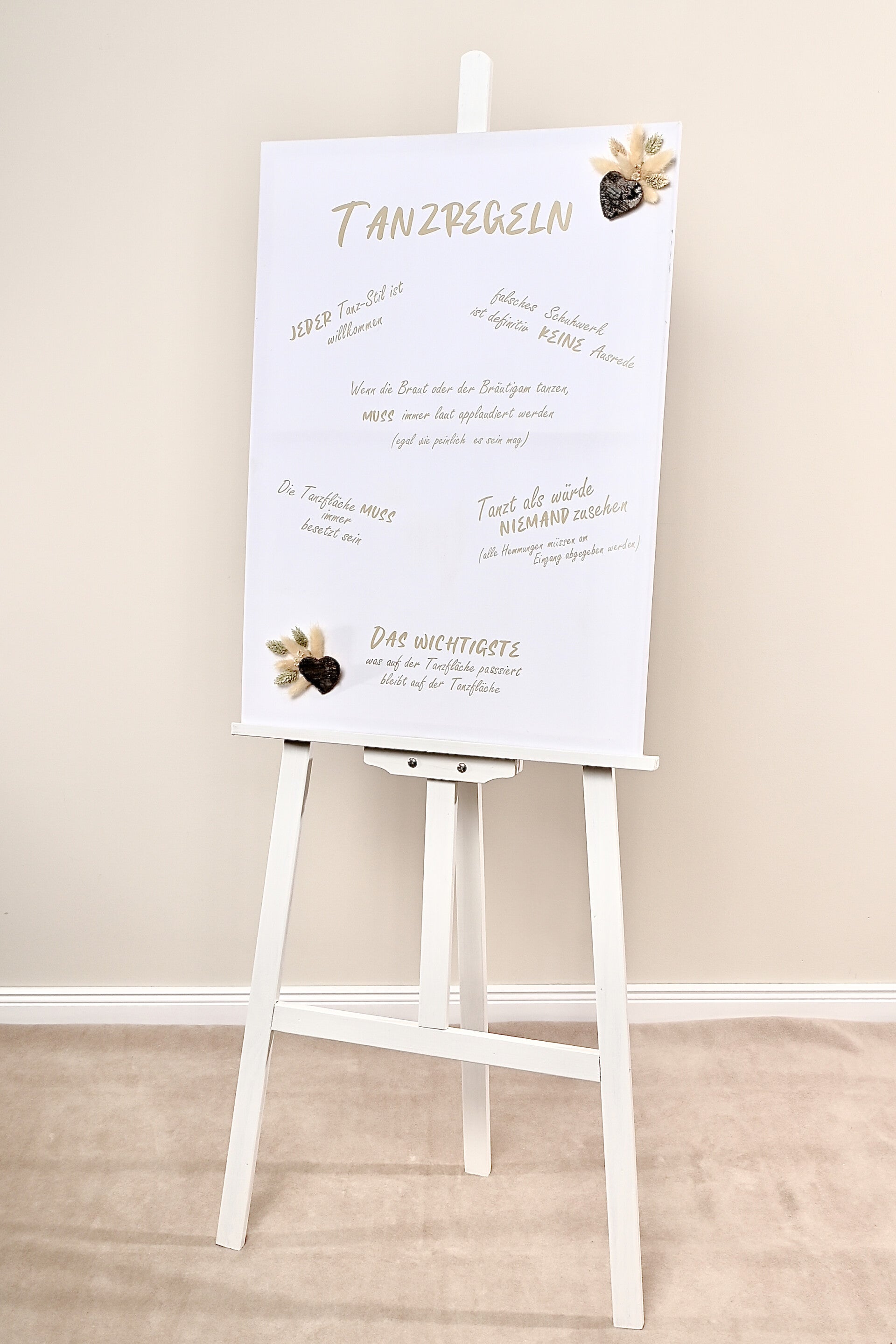 Sie eignet sich besonders gut für unser Hochzeitsgästebuch, einem Willkommenschild oder auch als Halterung für einen Sitzplan. Ob mit Blumen verziert oder auch ohne Dekoration - sie passt sich allen Hochzeitsstilen an. Der rustiakle Holzton der Staffelei passt zu jeder Hochzeitslocation.