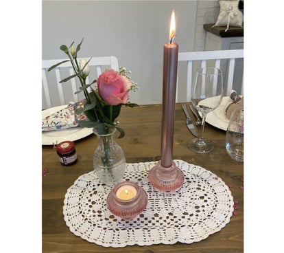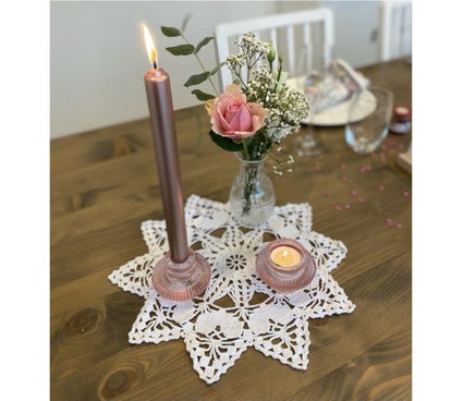 Auf unseren kleinen Häkeldeckchen lassen sich Hochzeitsblumen und Kerzen perfekt in Szene setzen. Man benötigt nicht immer Tischdecken auf den Hochzeitstischen. Lasst die Tische rustikal wirken und dekoriert sie einfach nur mit unseren hübschen Häkeldeckchen. Zusammen mit unseren Kleine Marakesch-Vasen und Kerzenhalter 2 in 1 in rosa sehen die Hochzeitstische so perfekt dekoriert aus.