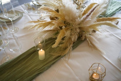 Ein Läufer pro Tisch in der mitte und mit unseren Marakesch Vasen dekoriert - zauber Ihr im nun eine wundervolle Hochzeitsdekoration.