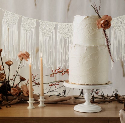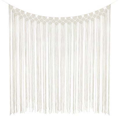 Eine tolle Makramee-Kulisse, egal wo Ihre sie braucht. Passend dazu sind auch unser Makramee Brautpaarstuhl Set oder unsere Makramee Wimpelkette .
